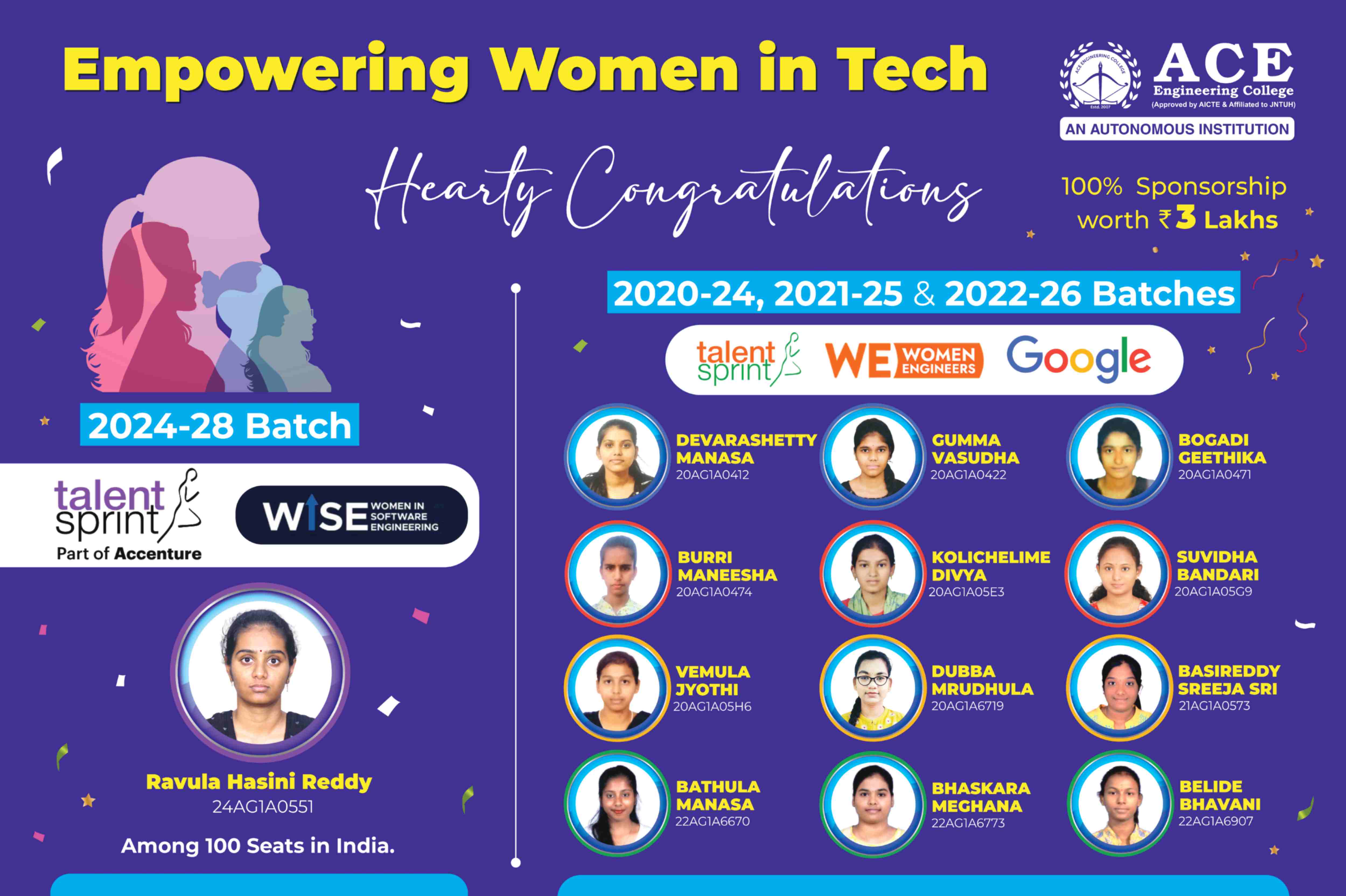 ACE is proud to be associated with this flagship initiative that mentors and supports women in tech, encouraging greater participation in core engineering and coding careers.